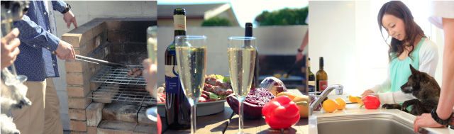 シーグラスには、調理器具が各種揃っています。海の見えるキッチンでのお料理は、是非テラスで召し上がりください。また、ガーデンに併設された本格的なグリルで楽しむバーベキューも楽しみのひとつ。陽の光をあびて楽しむひと時はご家族とわんちゃんの大切な思い出になるはず。