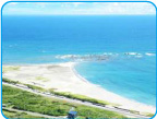 白浜一美しいと地元の人にも人気のビーチ。わんちゃんが思い切り走り回れる白砂からは大島、晴天なら新島も見えます。デッキが気持ちよいギャラリーカフェ「波音日和」も海岸沿いに。