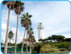 「日本の灯台50選」に選ばれた白亜の八角形をした美しい大型灯台。太平洋を見渡せる展望台も。灯台を中心とした公園は格好の約20分の散策コースです。