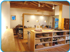 千倉ならではの個性的な商品を取り揃えた館内。目の前には海辺にひろがる広い芝生と漁船のレプリカも。すぐ側の花畑では花摘みも楽しめます。